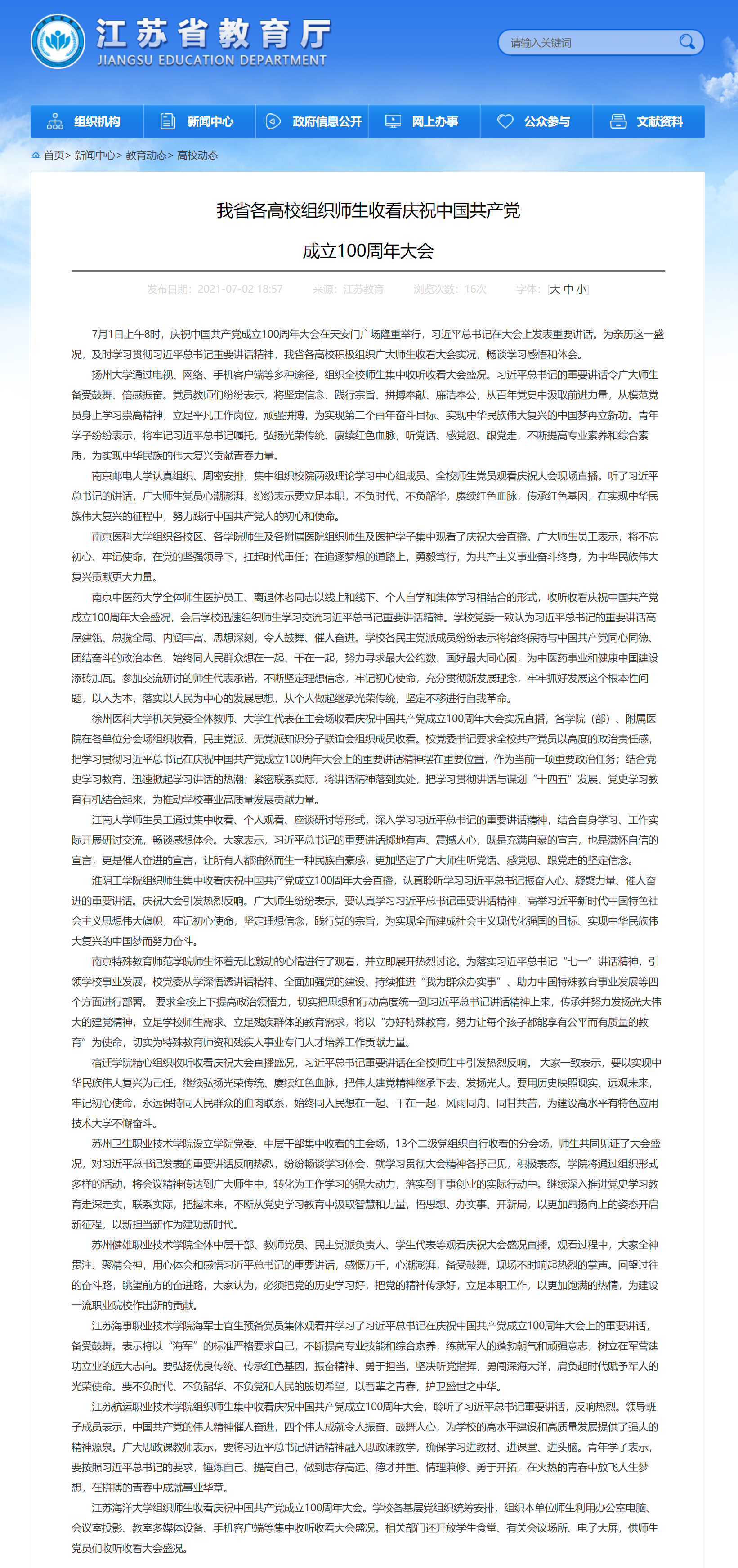 【省教育厅官网】我省各高校组织师生收看庆祝中国共产党 成立100周年大会
