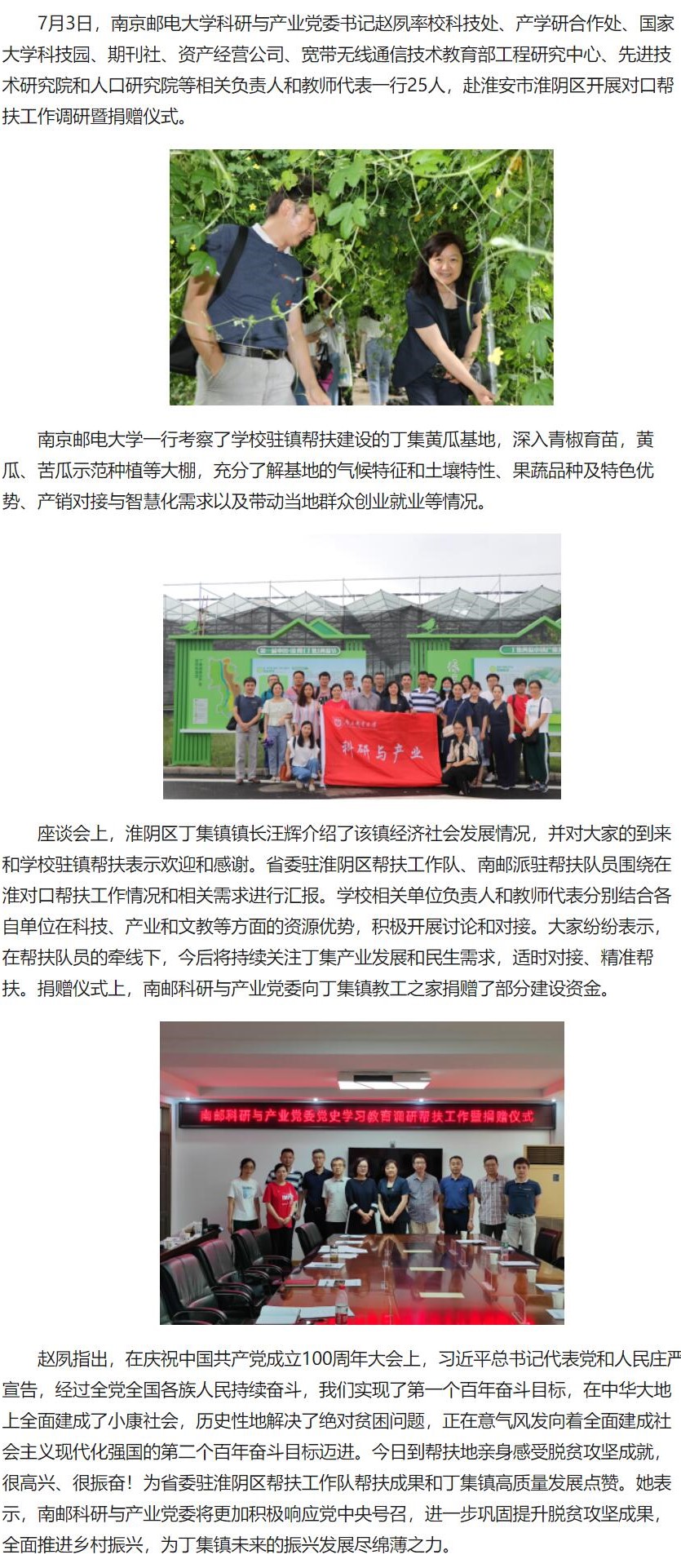 【中国江苏网】发挥科技产业优势 助力乡村振兴发展——南京邮电大学科研与产业党委莅淮开展调研捐赠活动