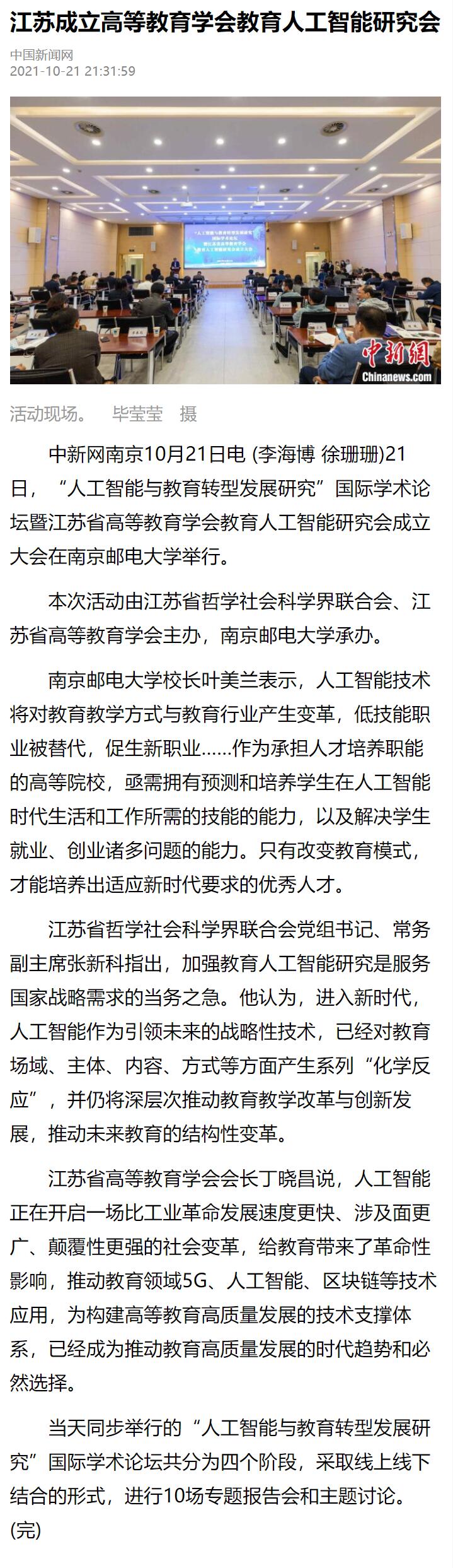 【中国新闻网】江苏成立高等教育学会教育人工智能研究会