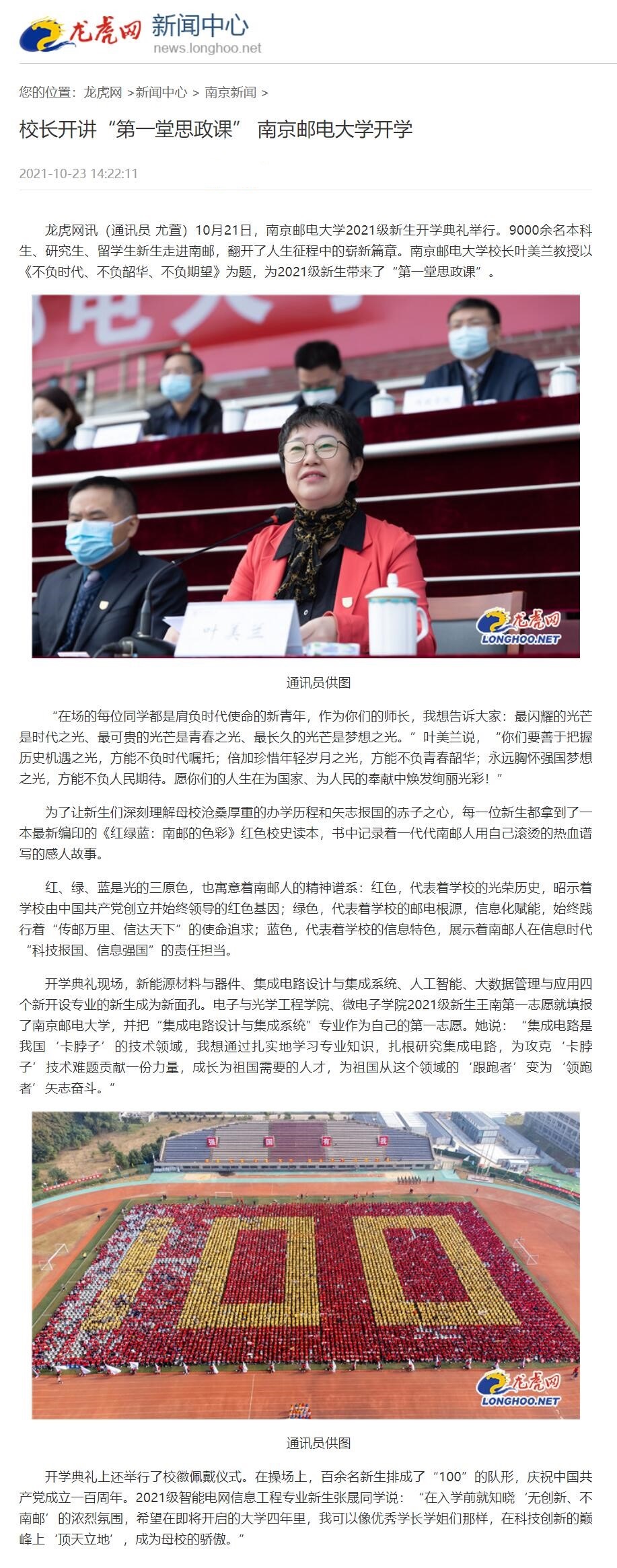 【龙虎网】校长开讲“第一堂思政课” 南京邮电大学开学