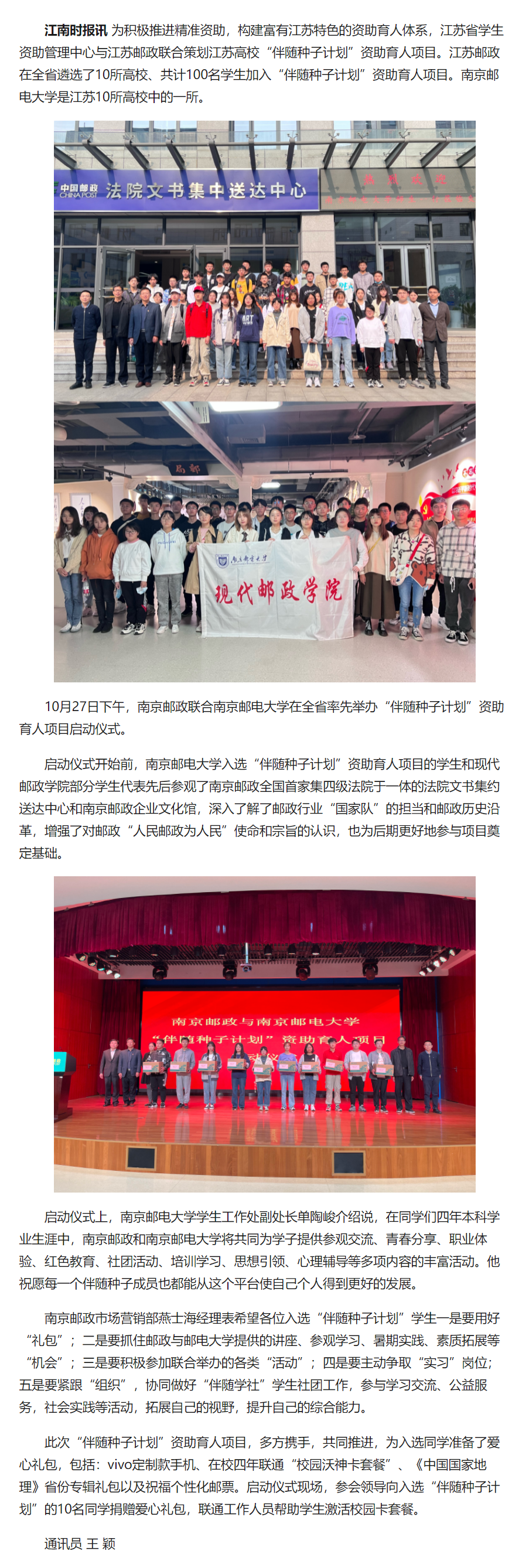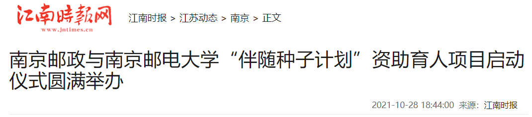 【江南时报网】南京邮政与南京邮电大学“伴随种子计划”资助育人项目启动仪式圆满举办