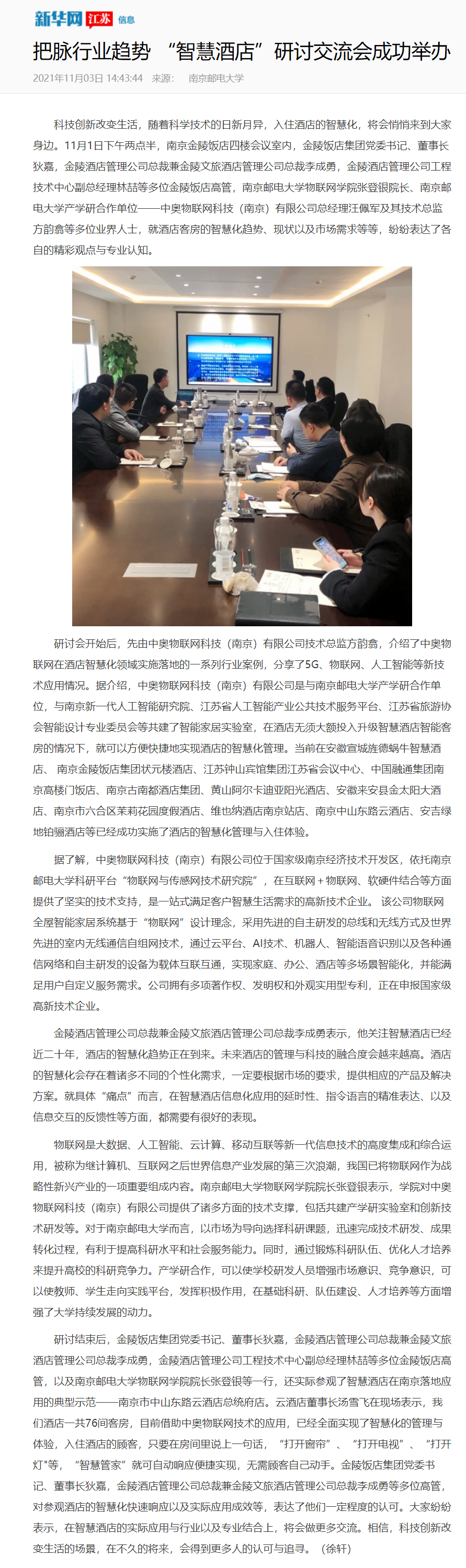 【新华网江苏频道】把脉行业趋势 “智慧酒店”研讨交流会成功举办