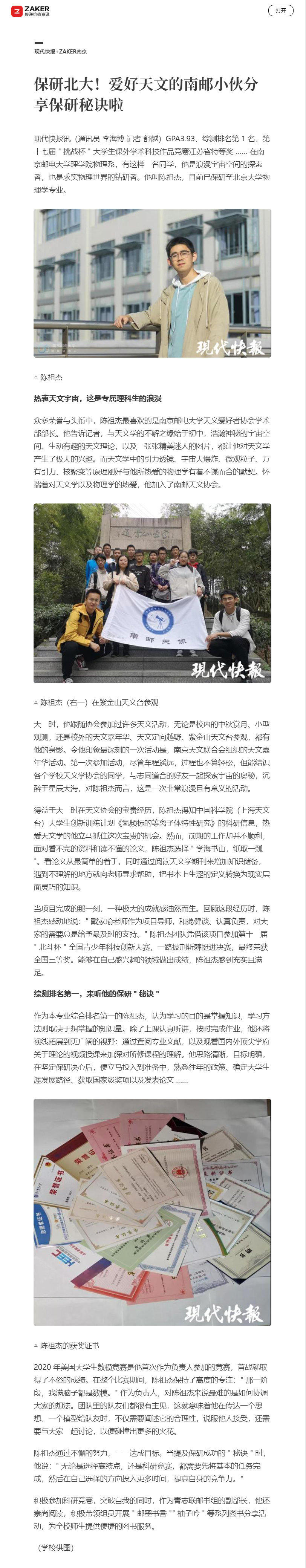【现代快报全媒体】保研北大!爱好天文的南邮小伙分享保研秘诀啦