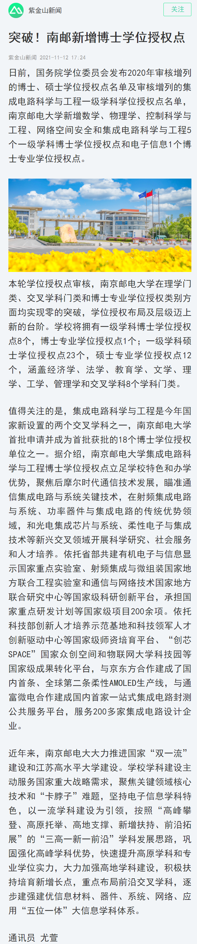 【南京日报客户端】突破!南邮新增博士学位授权点