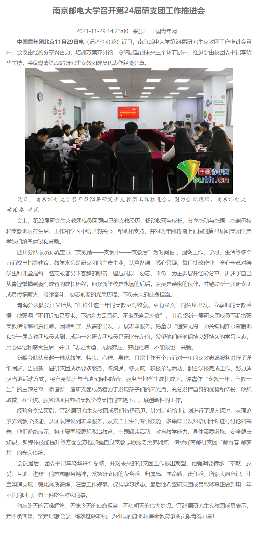 【中国青年网】南京邮电大学召开第24届研支团工作推进会