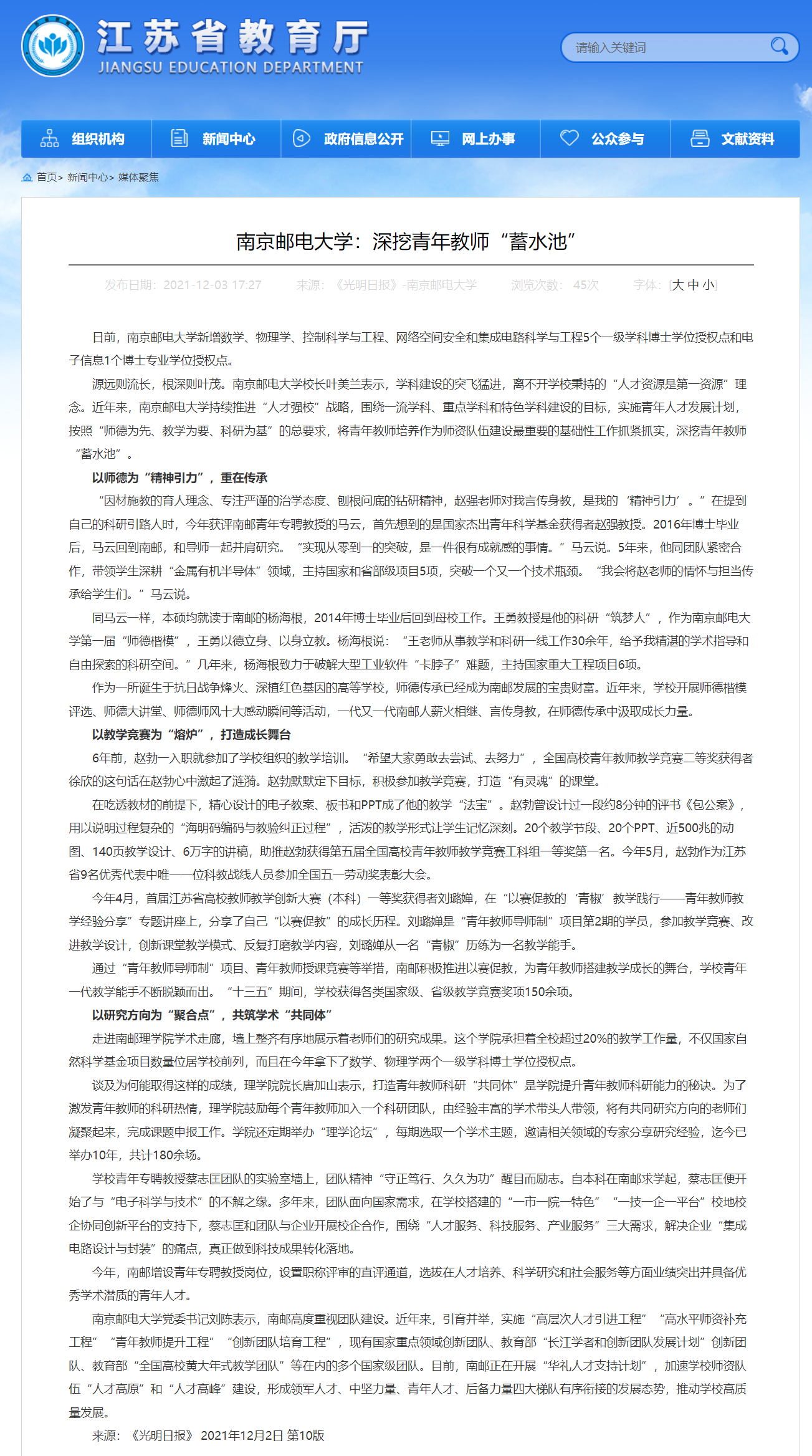 【省教育厅官网】南京邮电大学:深挖青年教师“蓄水池”
