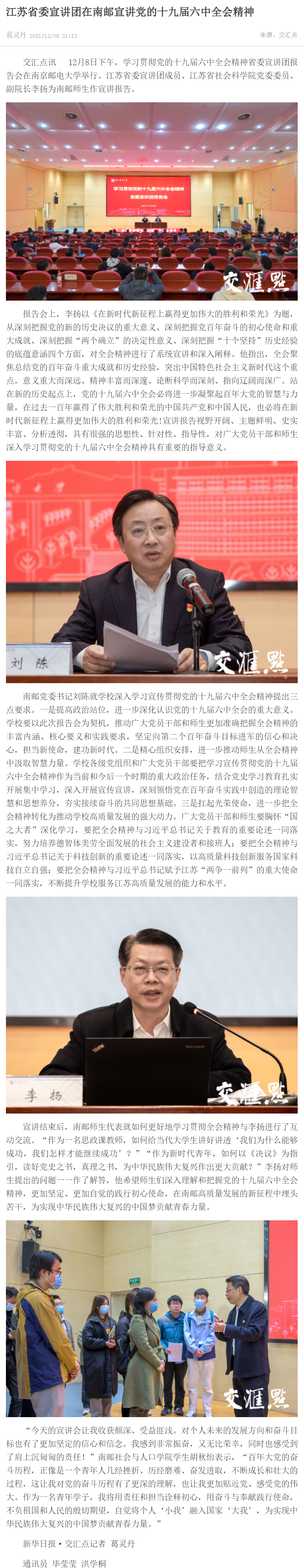 【新华日报客户端】江苏省委宣讲团在南邮宣讲党的十九届六中全会精神