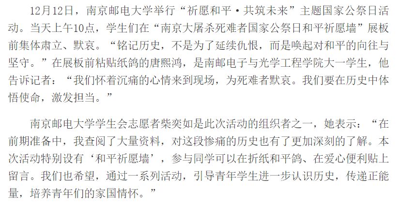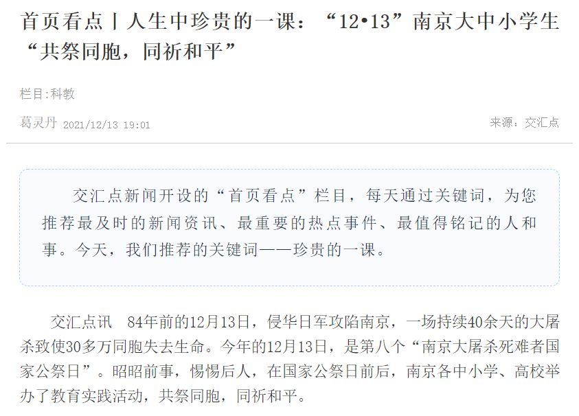【新华日报客户端】首页看点丨人生中珍贵的一课:“12•13”南京大中小学生“共祭同胞,同祈和平”