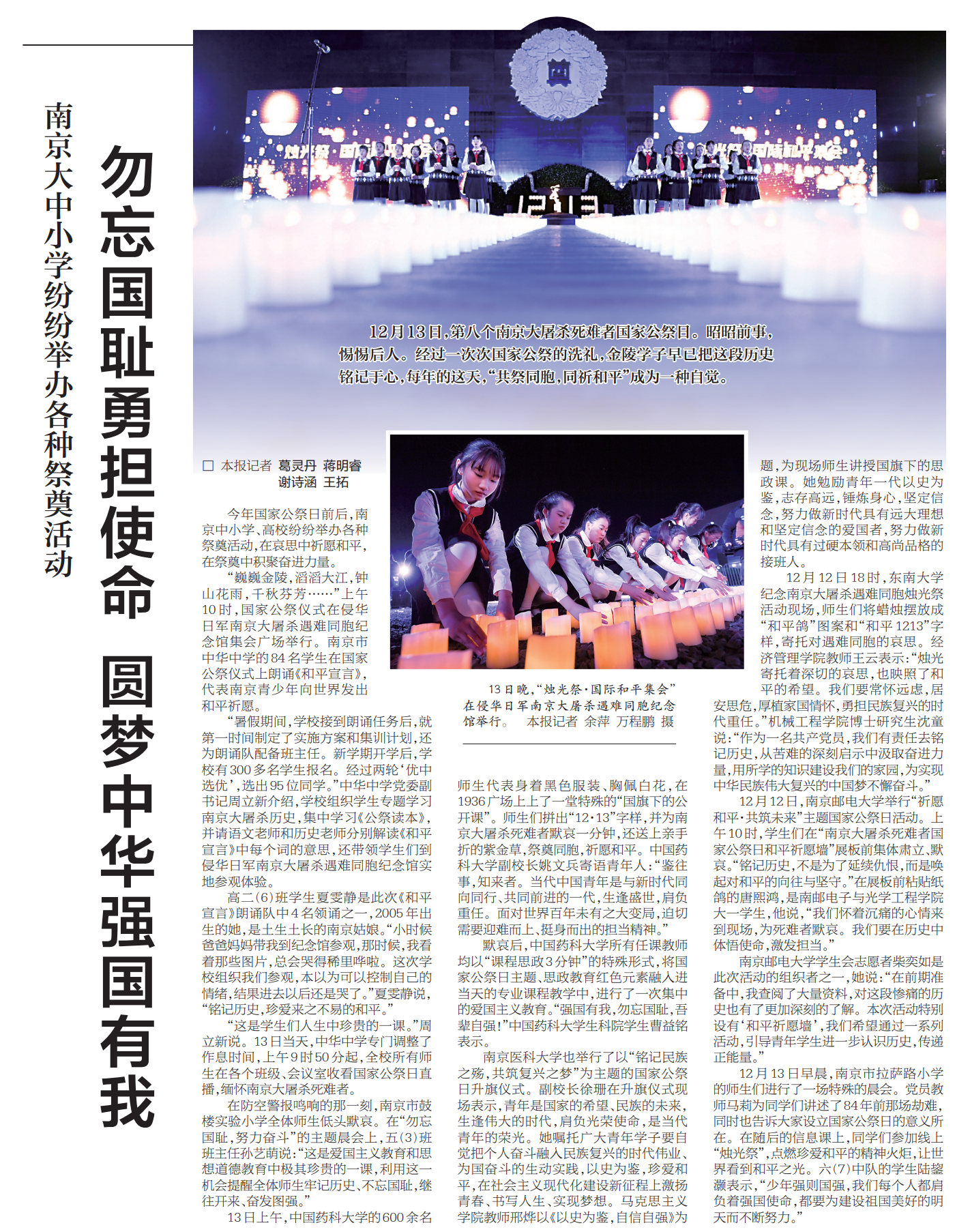 【新华日报】南京大中小学纷纷举办各种祭奠活动 勿忘国耻勇担使命 圆梦中华强国有我