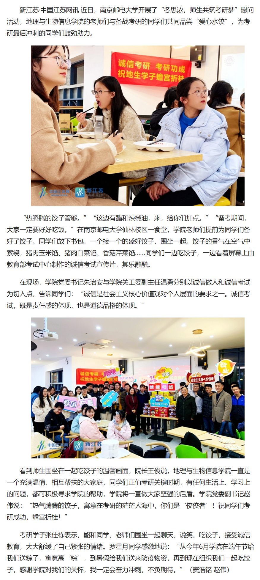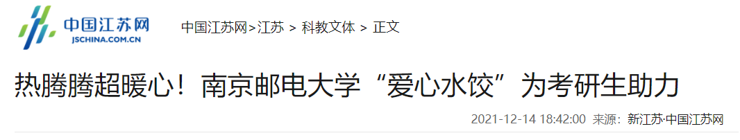 【中国江苏网】热腾腾超暖心!南京邮电大学“爱心水饺”为考研生助力