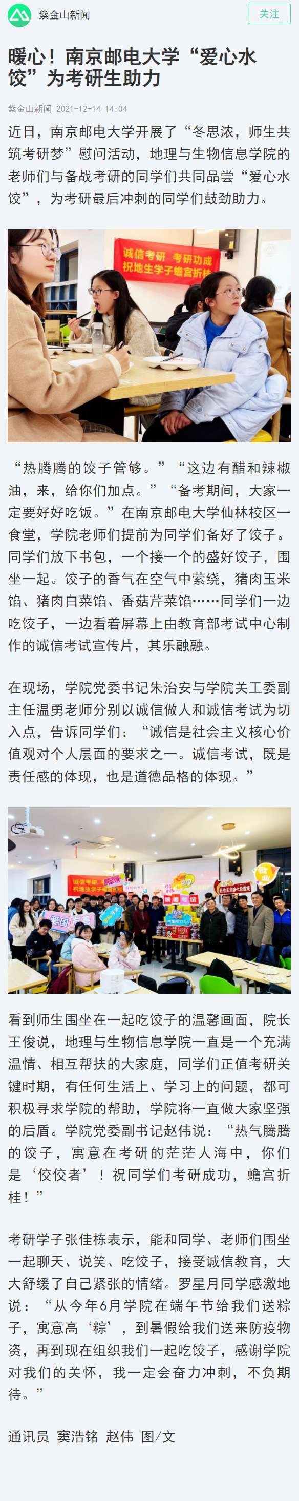 【南京日报客户端】暖心!南京邮电大学“爱心水饺”为考研生助力