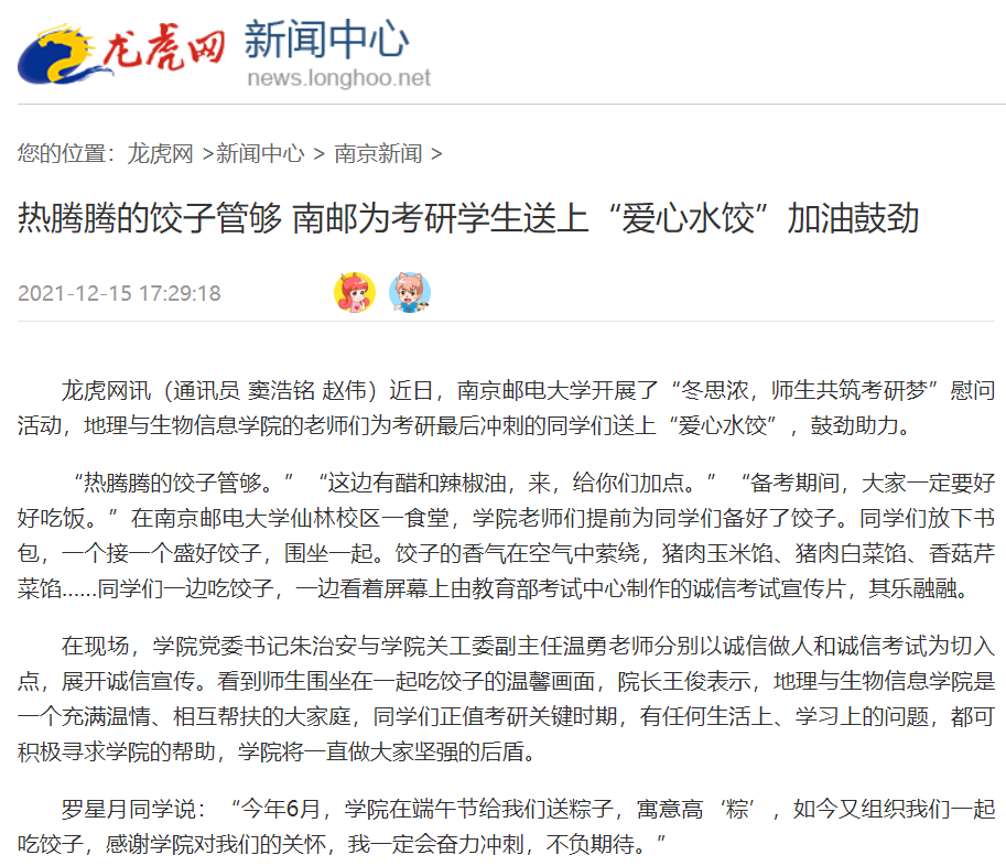 【龙虎网】热腾腾的饺子管够 南邮为考研学生送上“爱心水饺”加油鼓劲