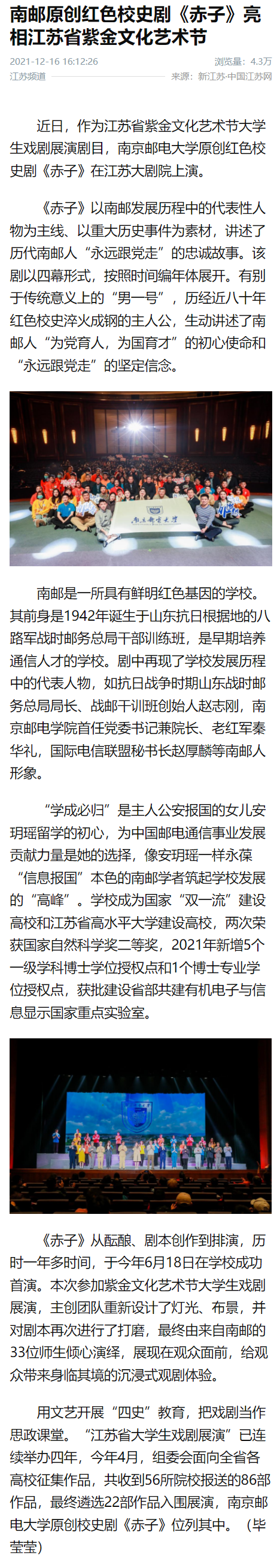 【新华社江苏频道】南邮原创红色校史剧《赤子》亮相江苏省紫金文化艺术节