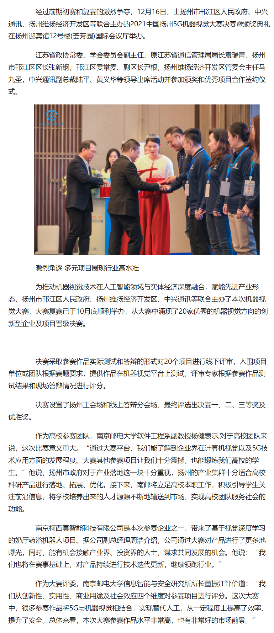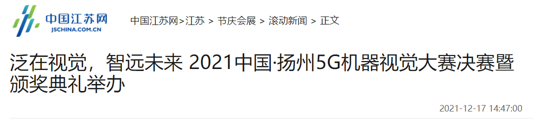 【中国江苏网】泛在视觉,智远未来 2021中国·扬州5G机器视觉大赛决赛暨颁奖典礼举办