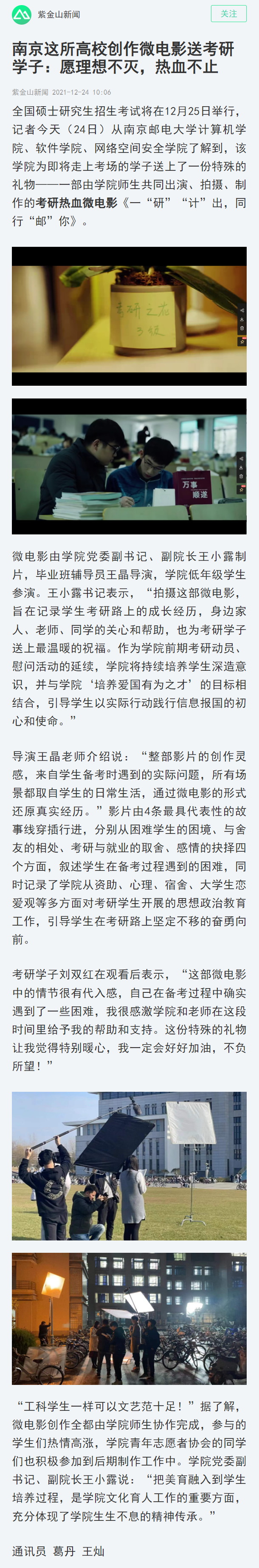 【南京日报客户端】南京这所高校创作微电影送考研学子:愿理想不灭,热血不止