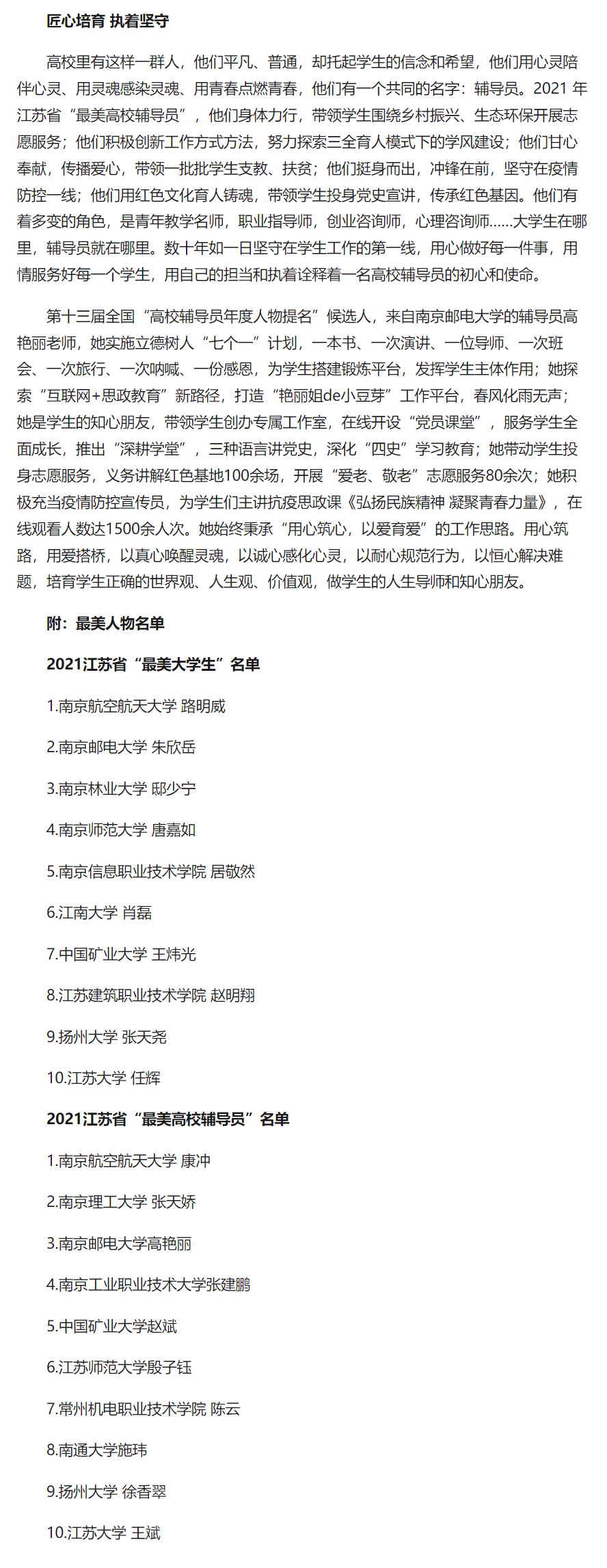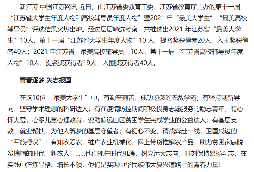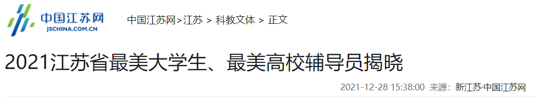 【中国江苏网】2021江苏省最美大学生、最美高校辅导员揭晓