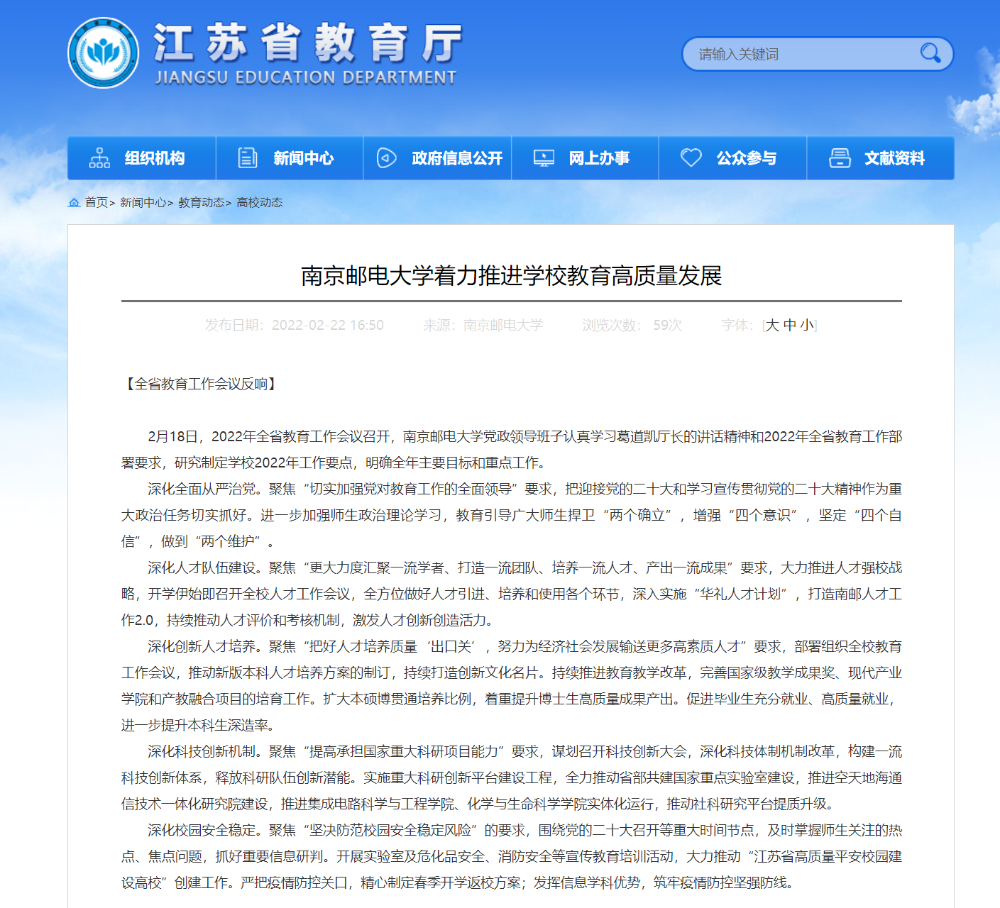 【省教育厅官网】南京邮电大学着力推进学校教育高质量发展