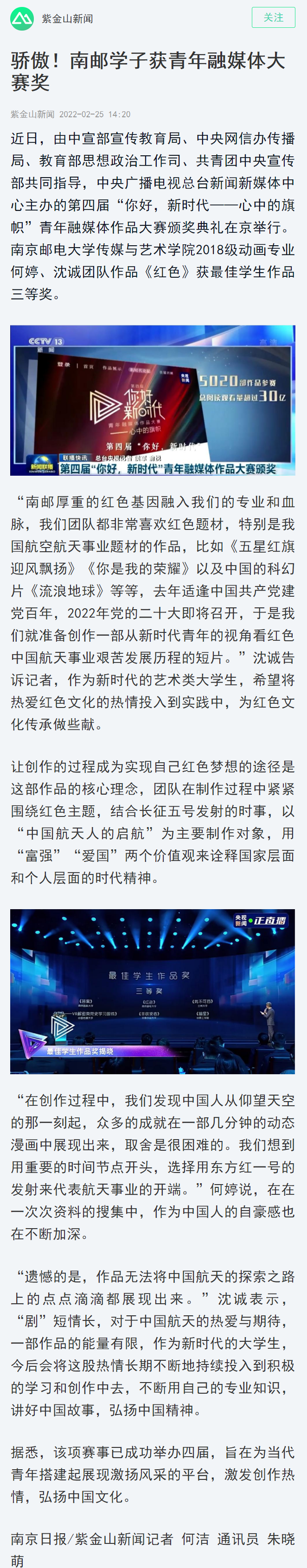 【南京日报客户端】骄傲!南邮学子获青年融媒体大赛奖