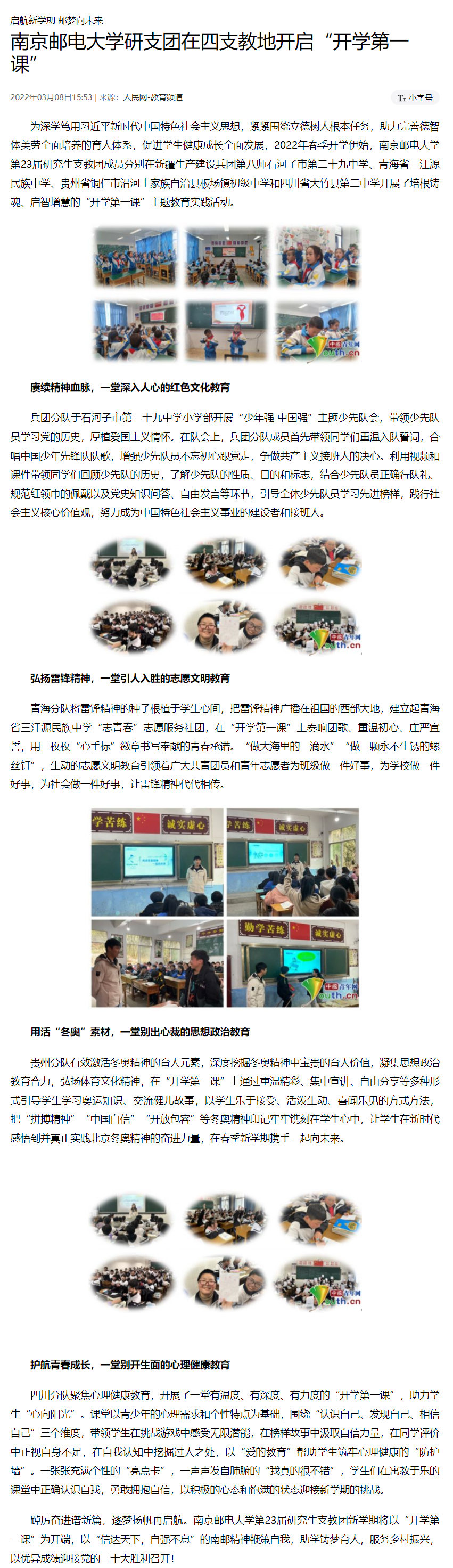 【人民网】启航新学期 邮梦向未来 南京邮电大学研支团在四支教地开启“开学第一课”