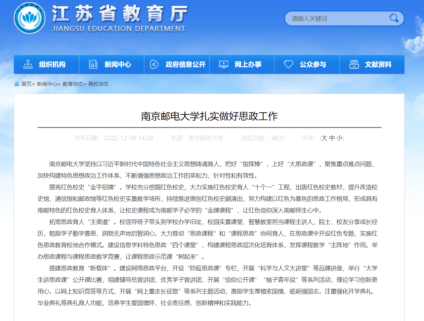 【省教育厅官网】南京邮电大学扎实做好思政工作