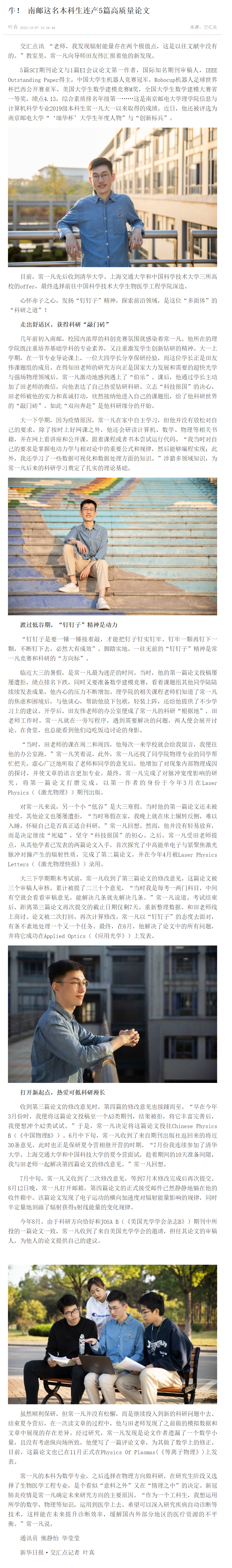 【新华日报客户端】牛! 南邮这名本科生连产5篇高质量论文