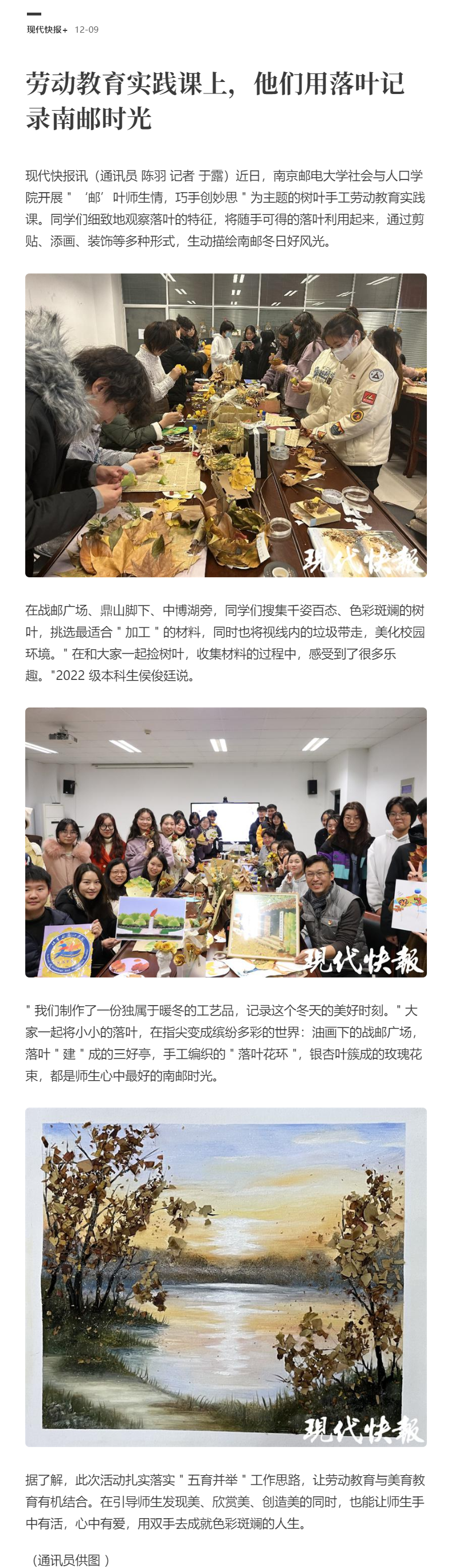 【现代快报全媒体】劳动教育实践课上,他们用落叶记录南邮时光
