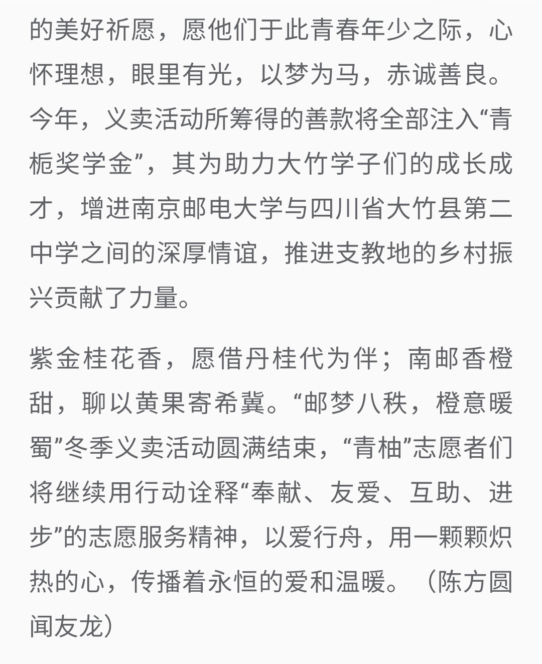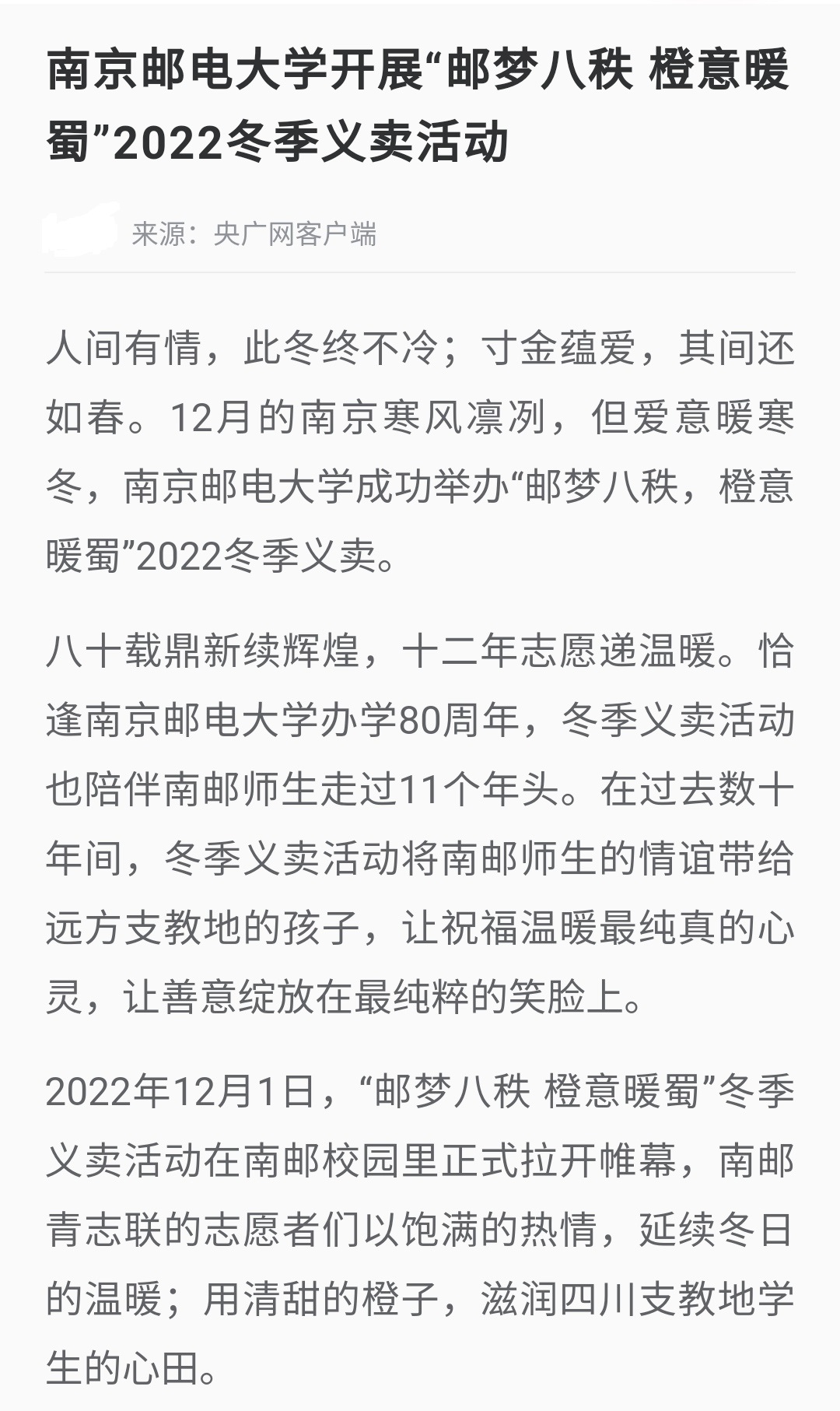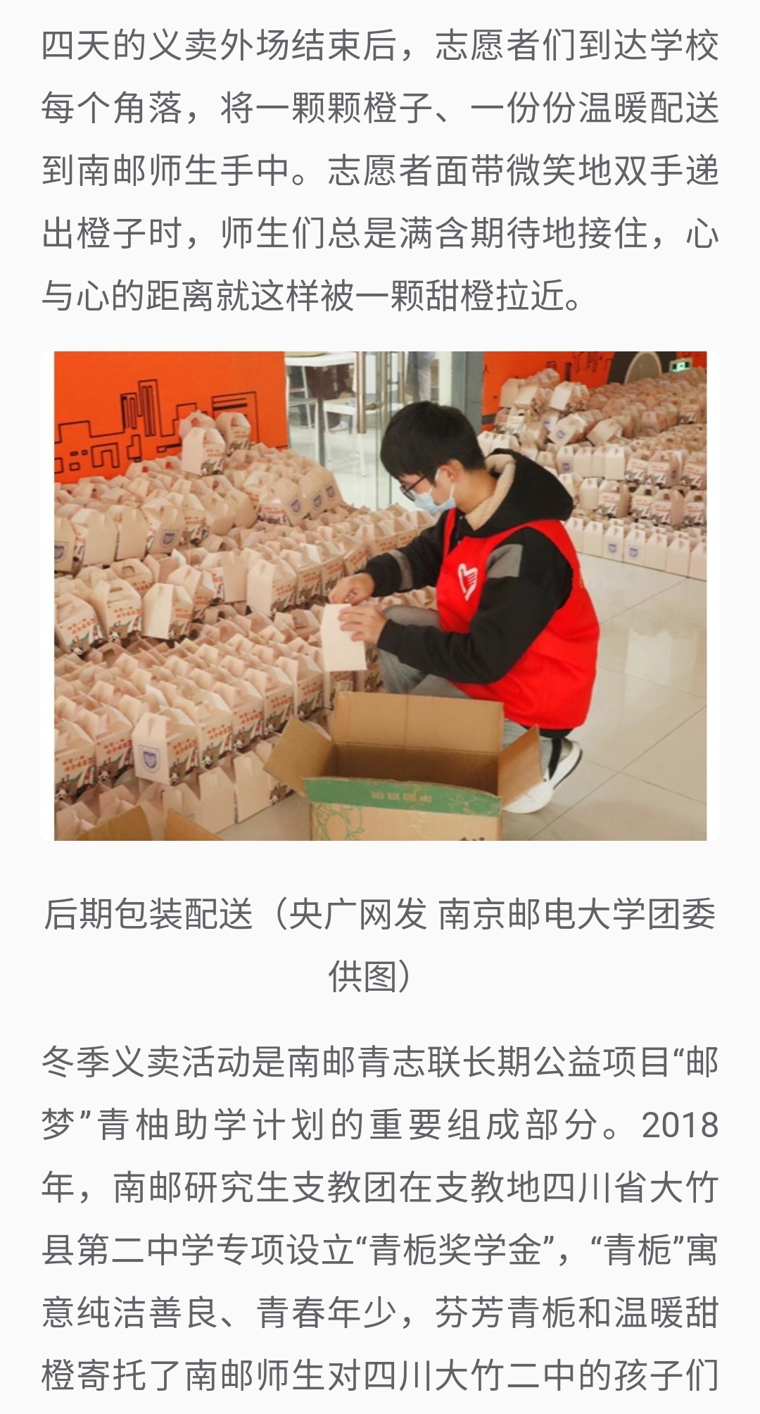 【央广网】南京邮电大学开展“邮梦八秩 橙意暖蜀”2022冬季义卖活动