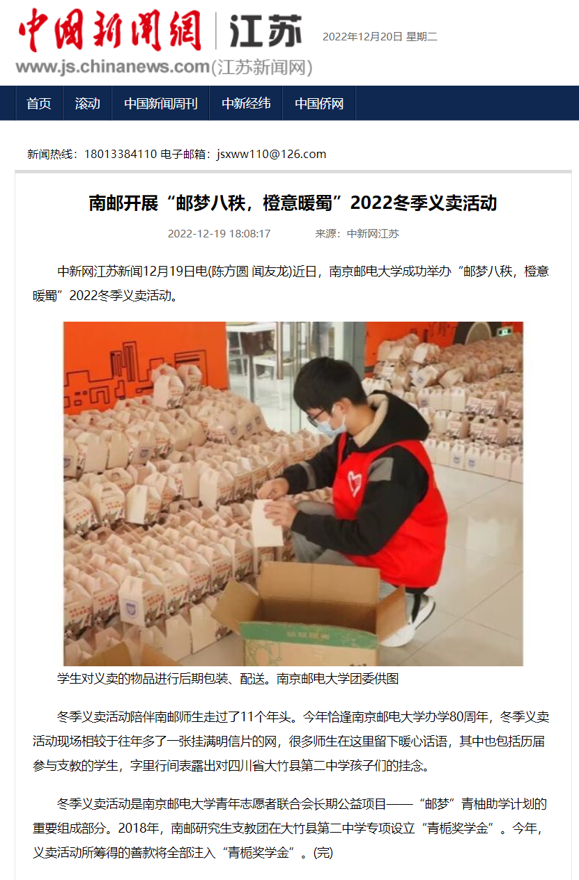 【中国新闻网】南邮开展“邮梦八秩,橙意暖蜀”2022冬季义卖活动