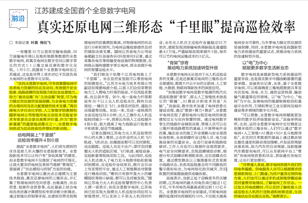【新华日报】真实还原电网三维形态 “千里眼”提高巡检效率