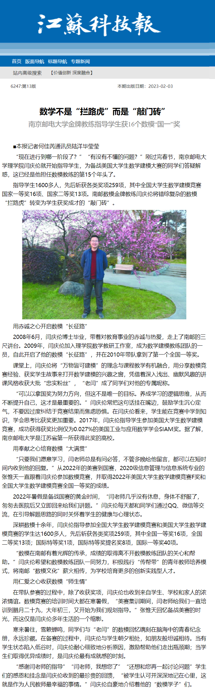 【江苏科技报】数学不是“拦路虎”而是“敲门砖”