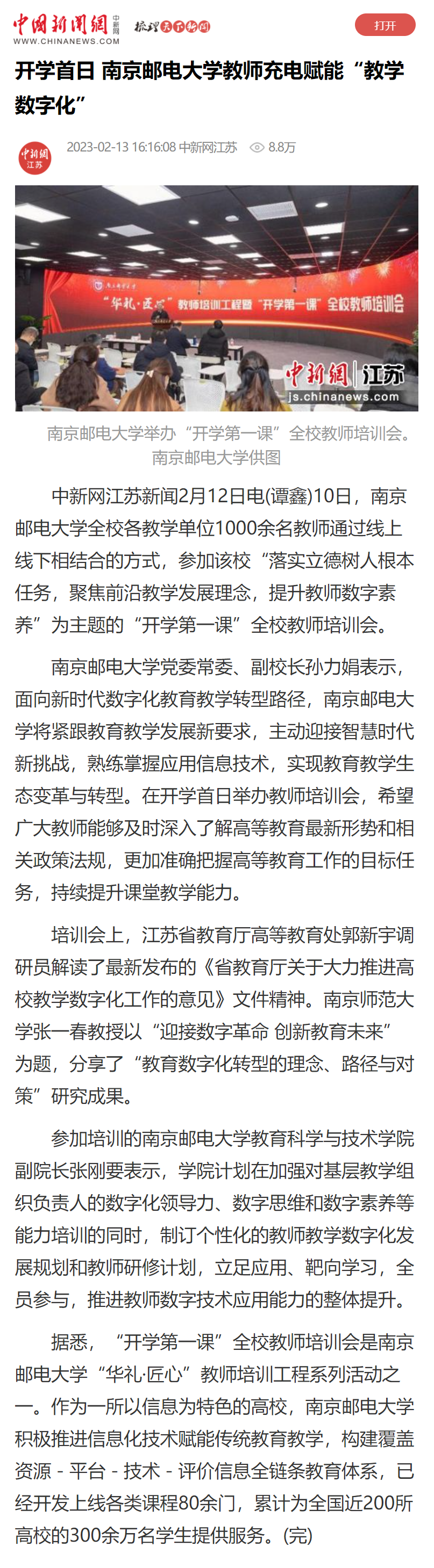 【中国新闻网】开学首日 南京邮电大学教师充电赋能“教学数字化”