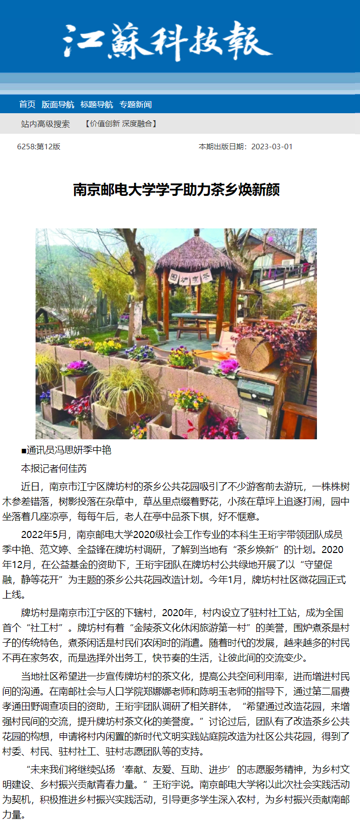 【江苏科技报】南京邮电大学学子助力茶乡焕新颜