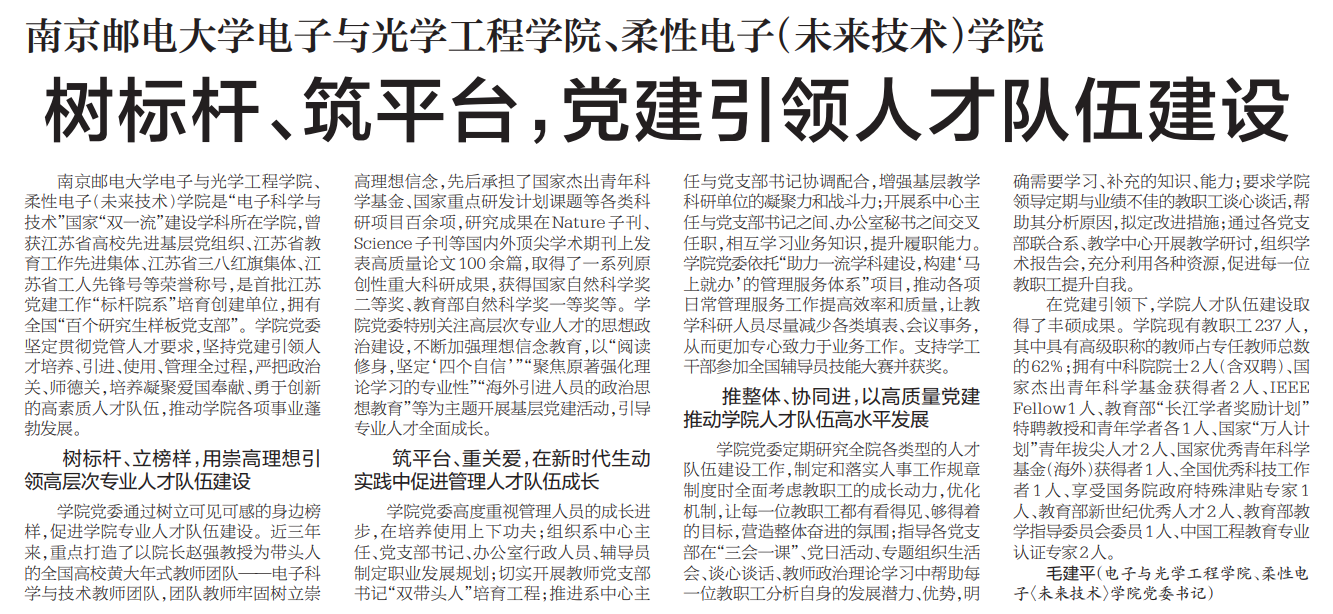 【新华日报】树标杆、筑平台,党建引领人才队伍建设