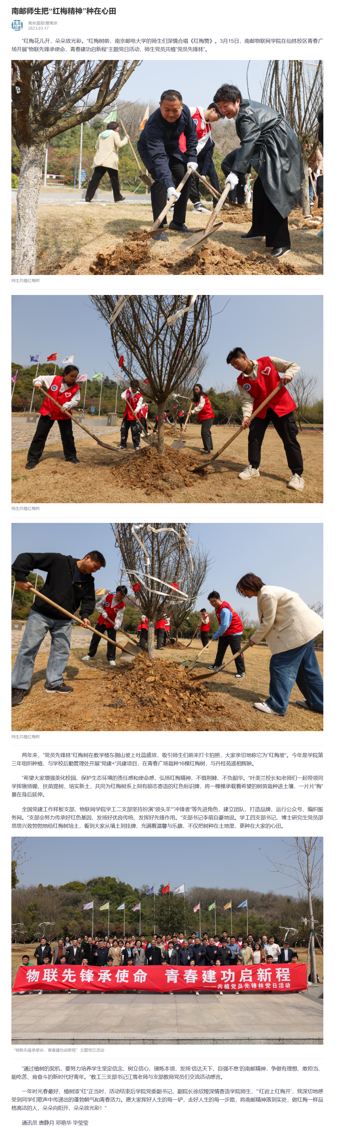 【南京晨报客户端】南邮师生把“红梅精神”种在心田