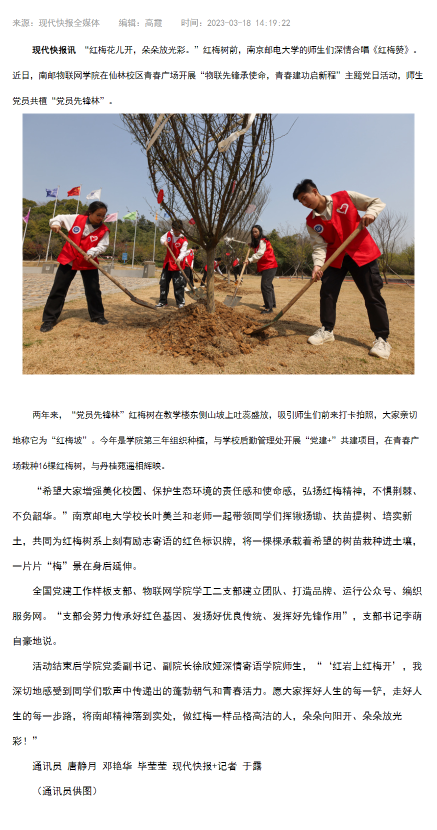 【现代快报全媒体】一年时光春最好,南邮师生共植“党员先锋林”
