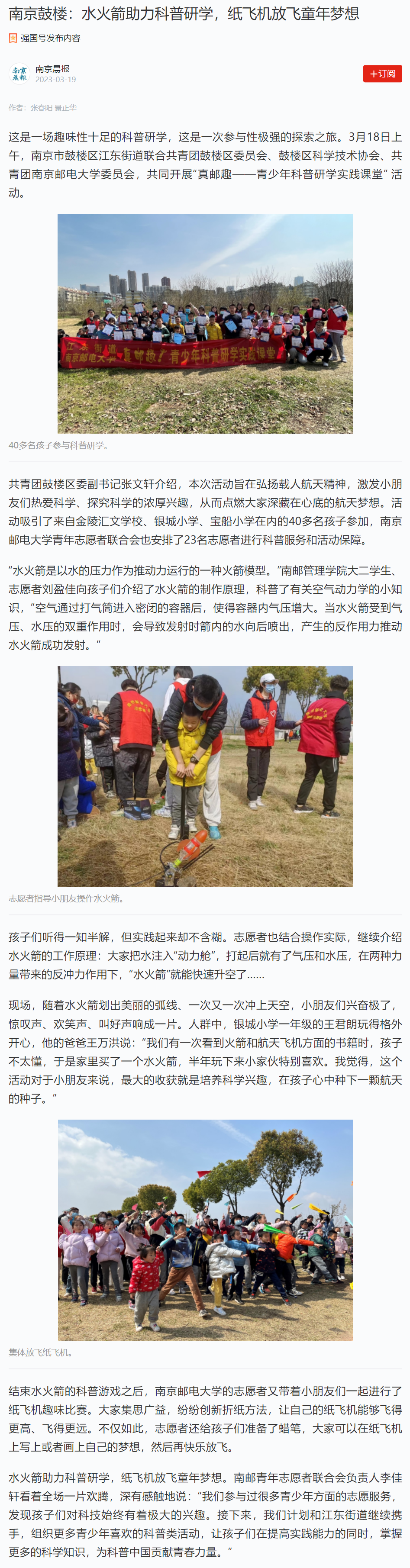 【学习强国】南京鼓楼:水火箭助力科普研学,纸飞机放飞童年梦想