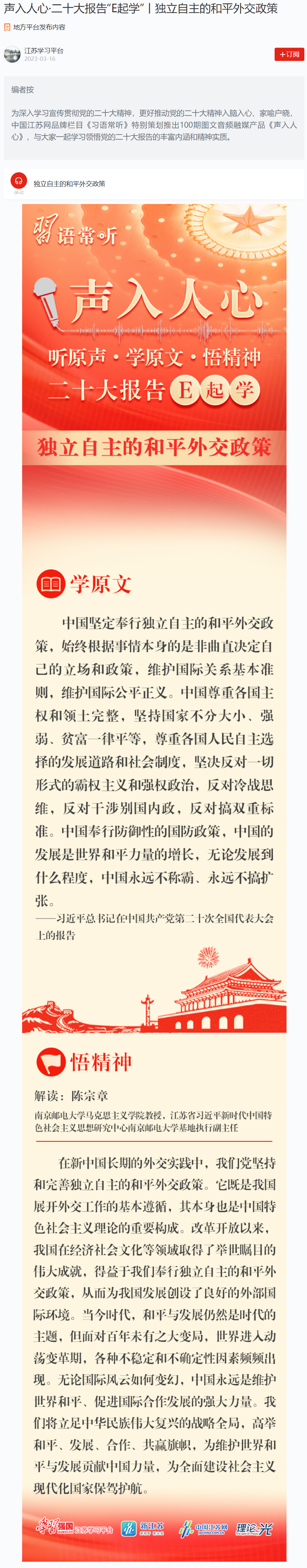【学习强国】声入人心·二十大报告“E起学”丨独立自主的和平外交政策