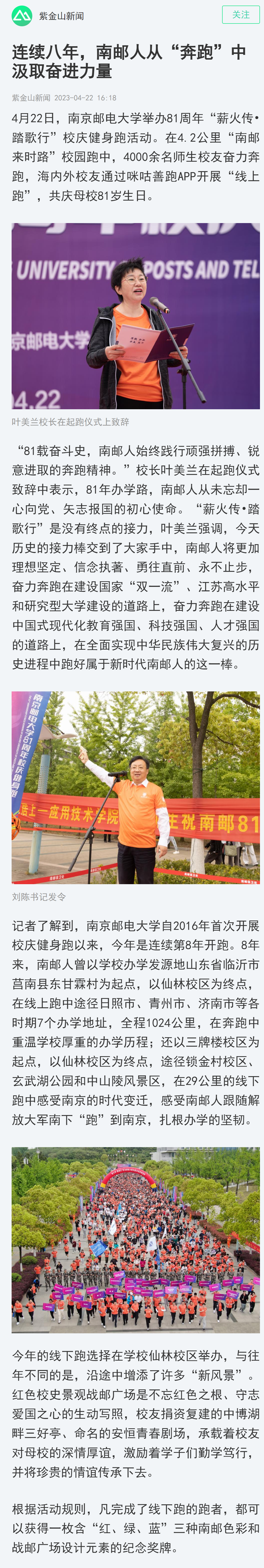 【南京日报客户端】连续八年,南邮人从“奔跑”中汲取奋进力量