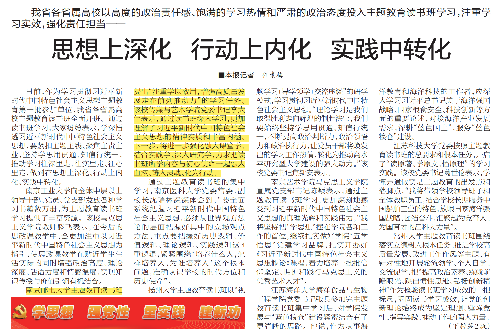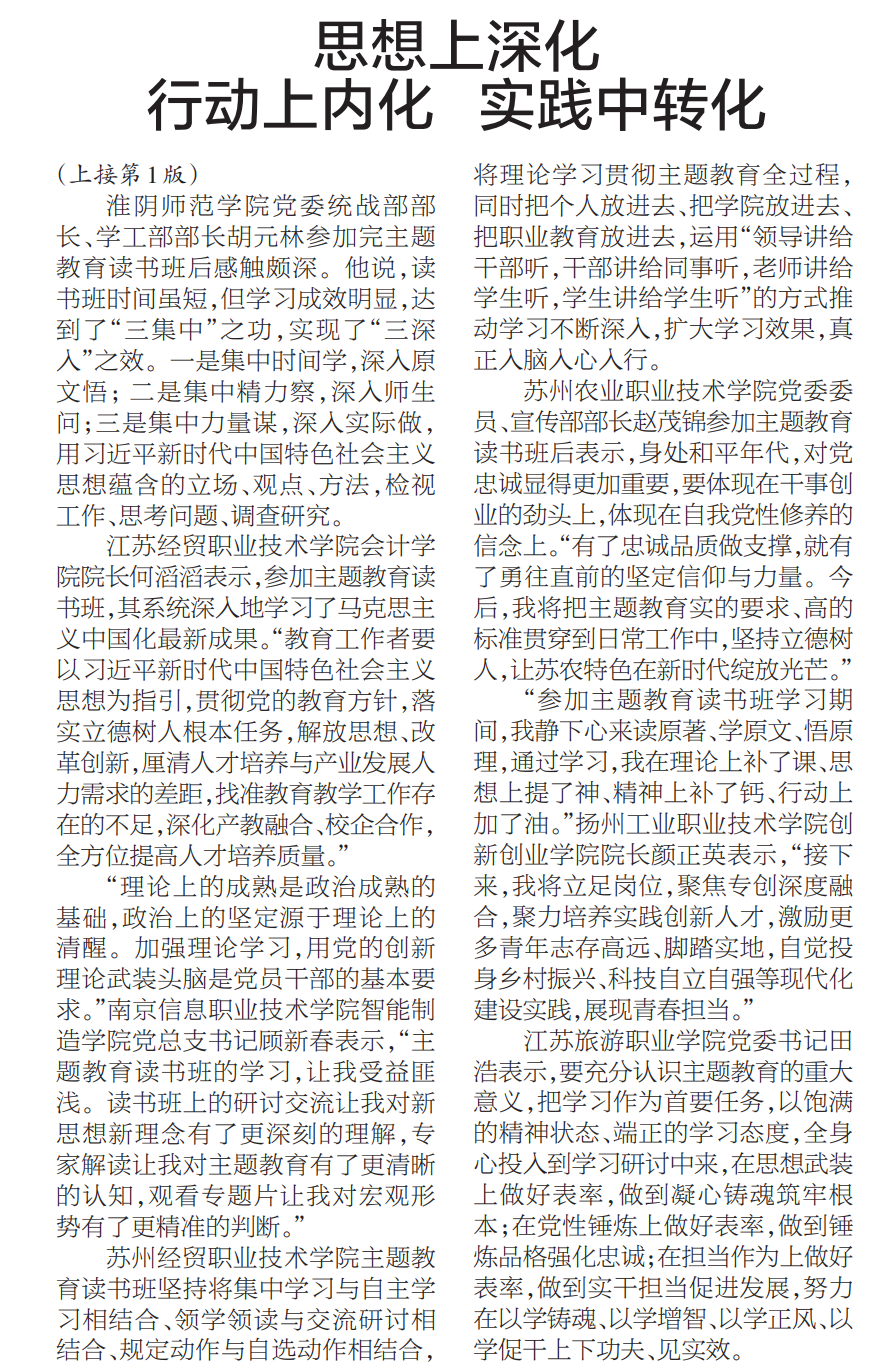 【江苏教育报】思想上深化 行动上内化 实践中转化