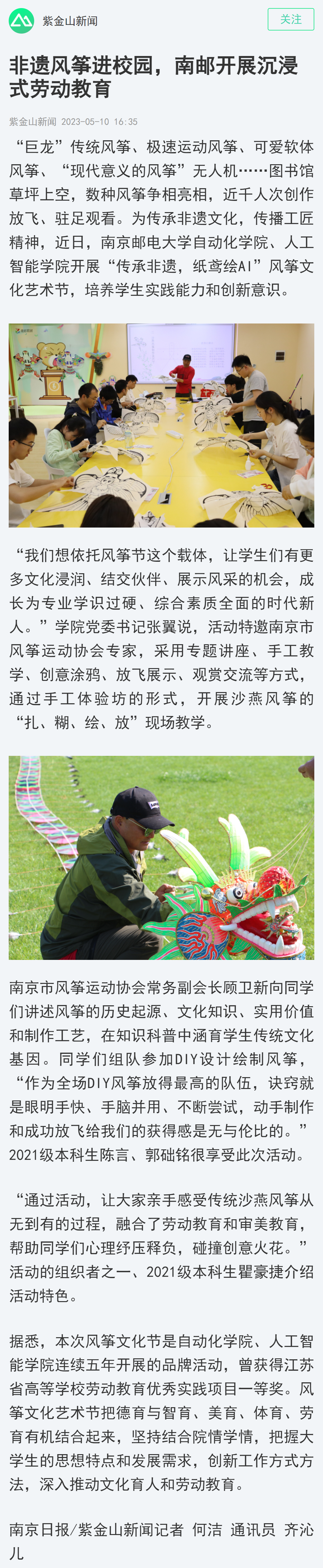 【南京日报客户端】非遗风筝进校园,南邮开展沉浸式劳动教育