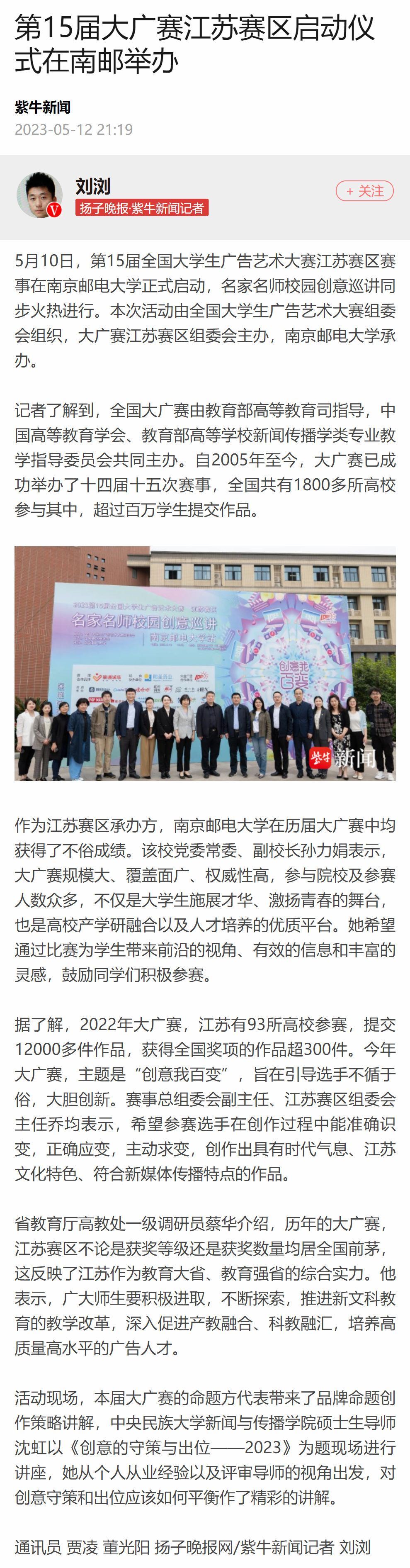【扬子晚报客户端】第15届大广赛江苏赛区启动仪式在南邮举办