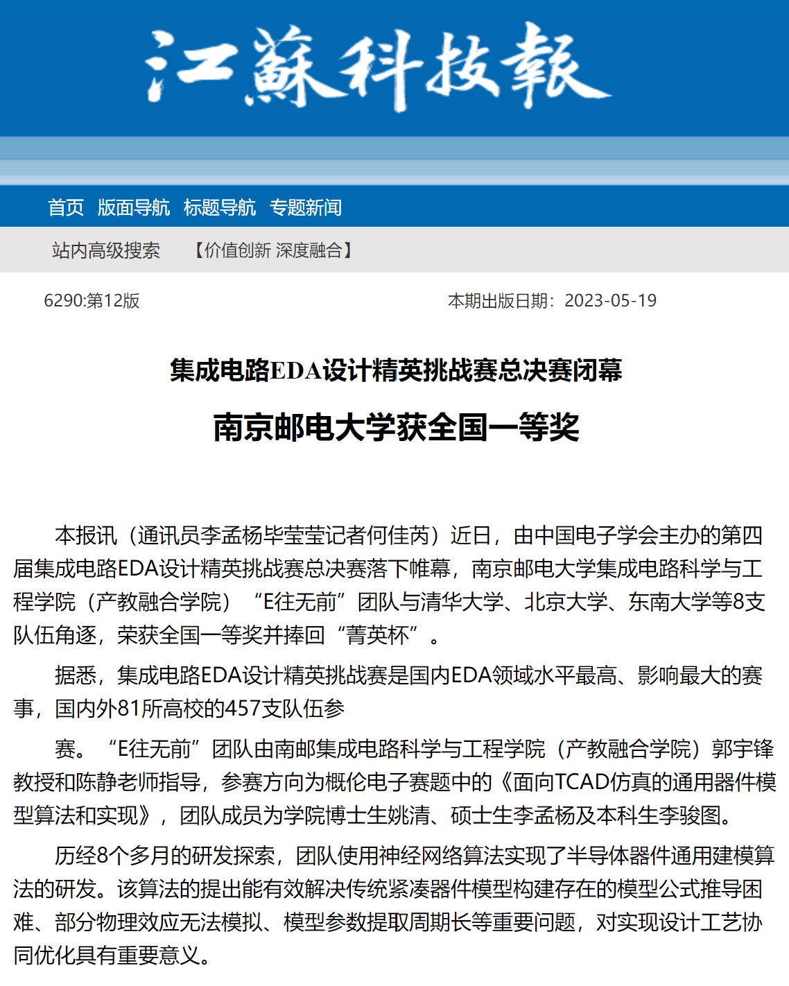 【江苏科技报】集成电路EDA设计精英挑战赛总决赛闭幕 南京邮电大学获全国一等奖