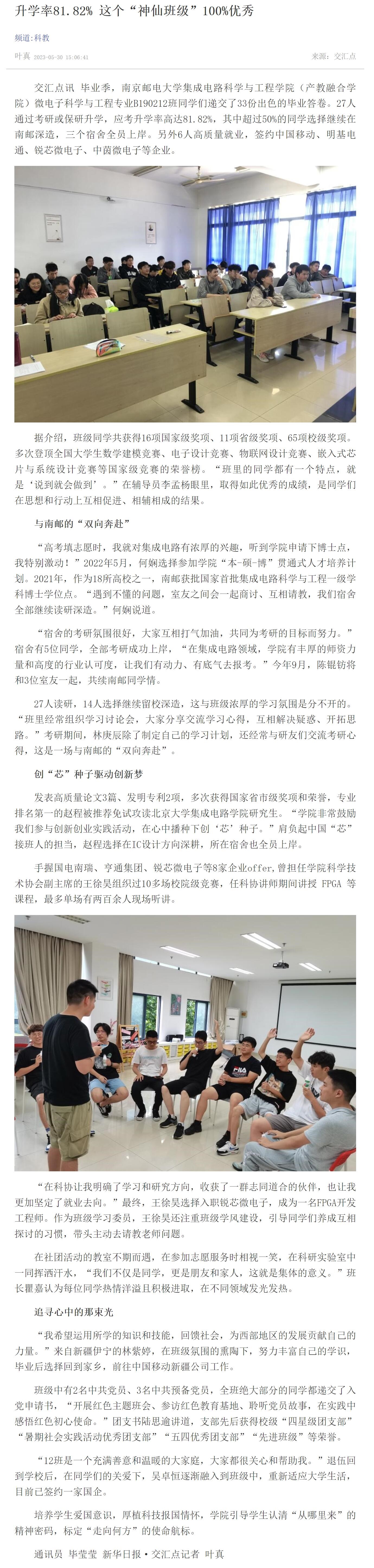 【新华日报客户端】升学率81.82% 这个“神仙班级”100%优秀