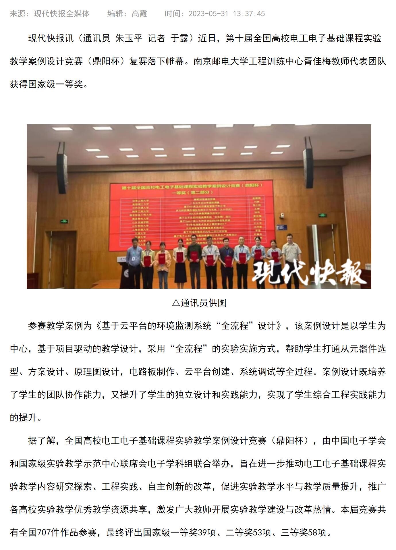【现代快报全媒体】国家级一等奖!南邮胥佳梅教师代表团队获得