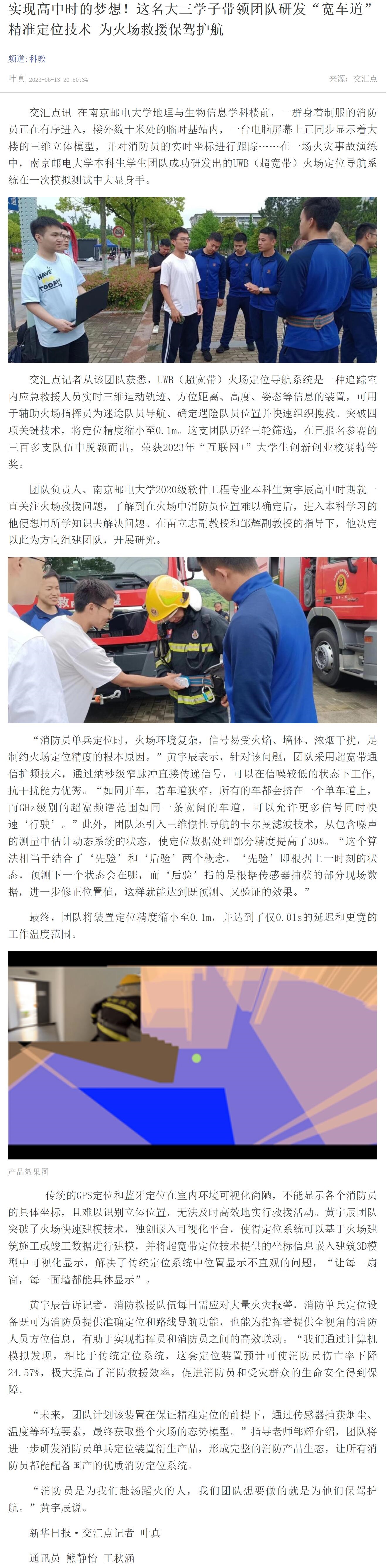 【新华日报客户端】实现高中时的梦想!这名大三学子带领团队研发“宽车道”精准定位技术 为火场救援保驾护航
