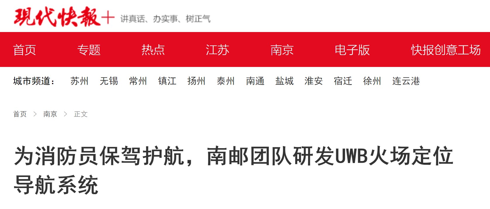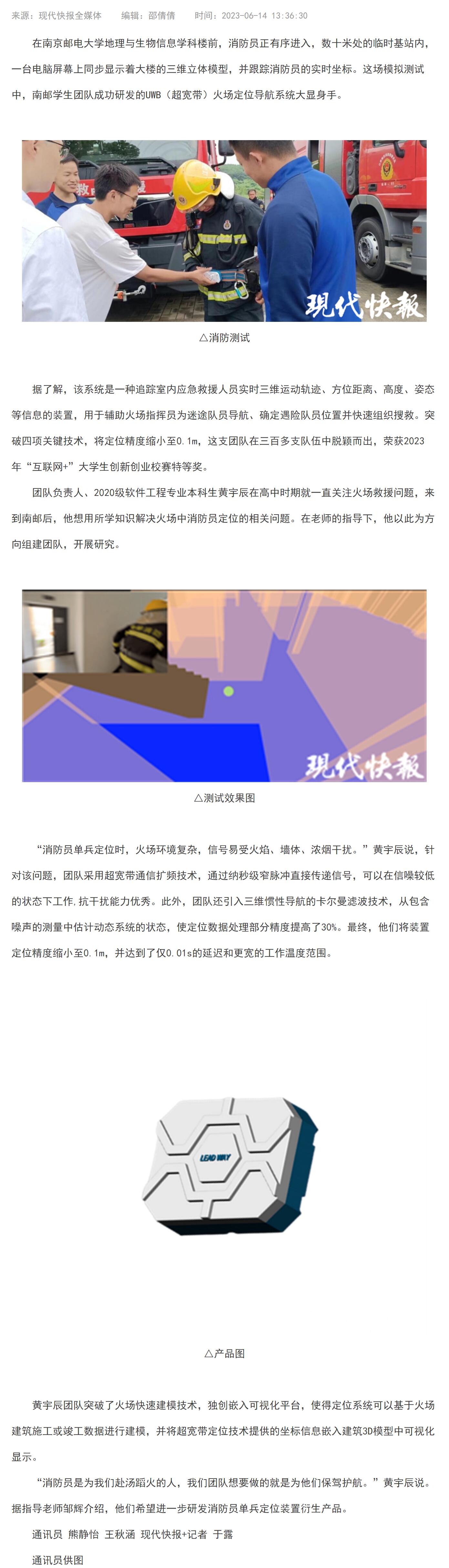【现代快报全媒体】为消防员保驾护航,南邮团队研发UWB火场定位导航系统