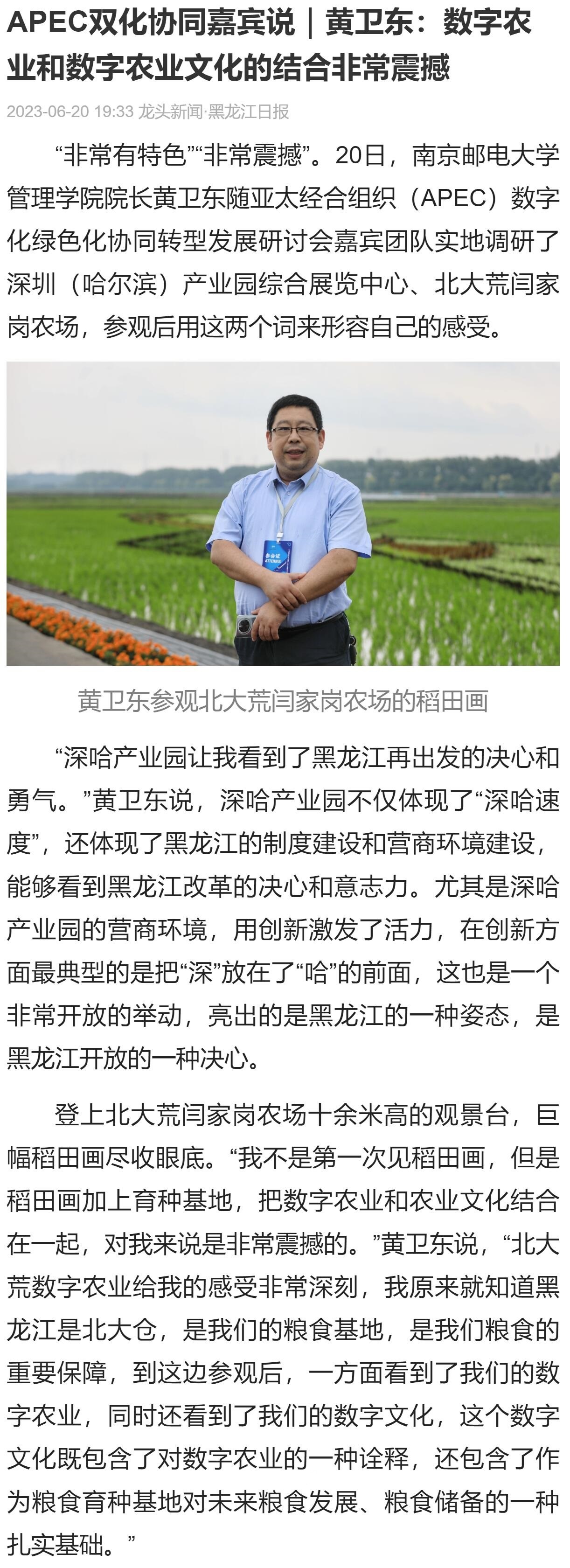 【黑龙江日报客户端】黄卫东:数字农业和数字农业文化的结合非常震撼