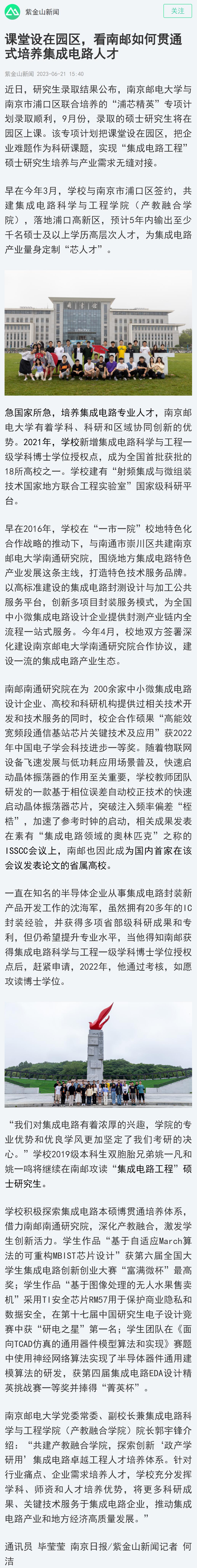 【南京日报客户端】课堂设在园区,看南邮如何贯通式培养集成电路人才