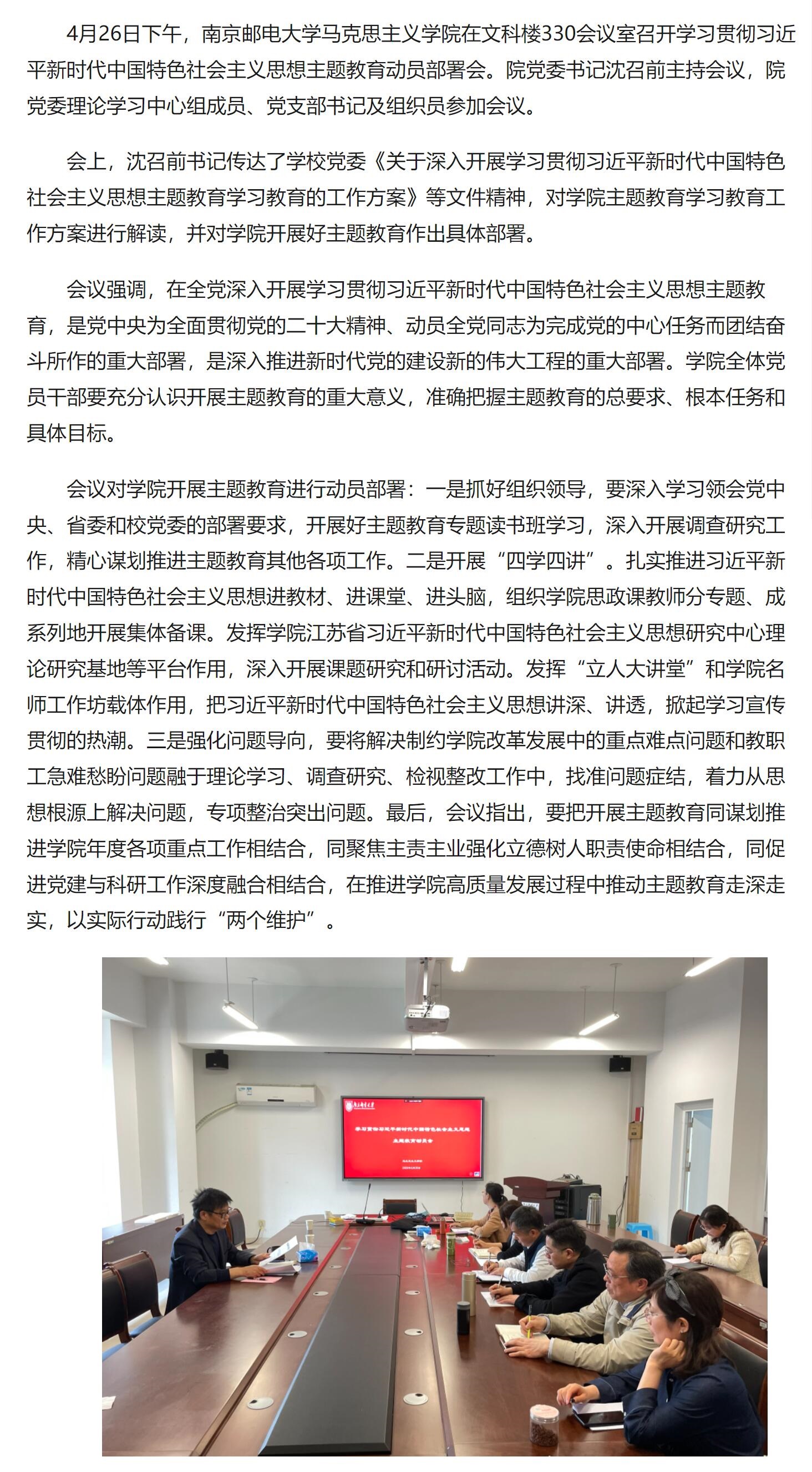 【中国江苏网】南邮马克思主义学院召开学习贯彻习近平新时代中国特色社会主义思想主题教育动员部署会