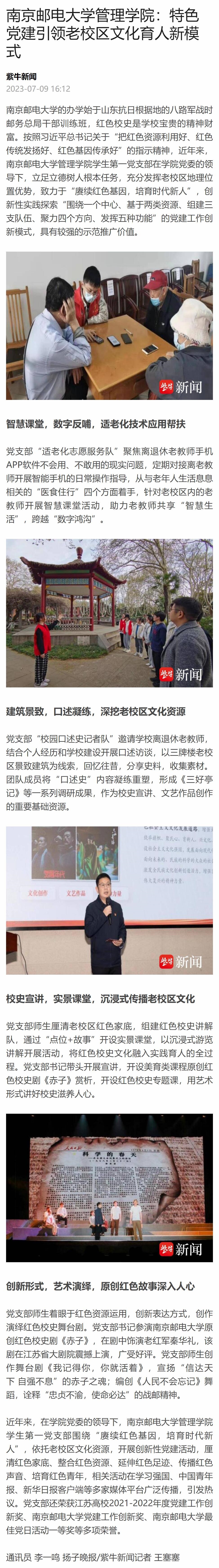 【扬子晚报客户端】南京邮电大学管理学院:特色党建引领老校区文化育人新模式